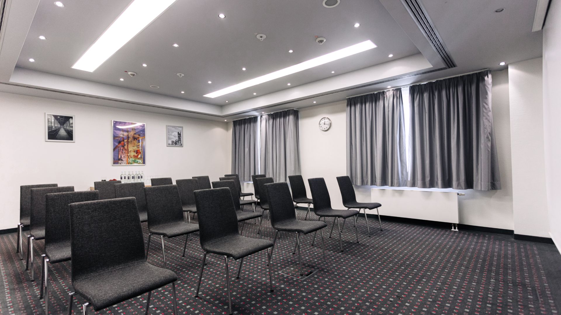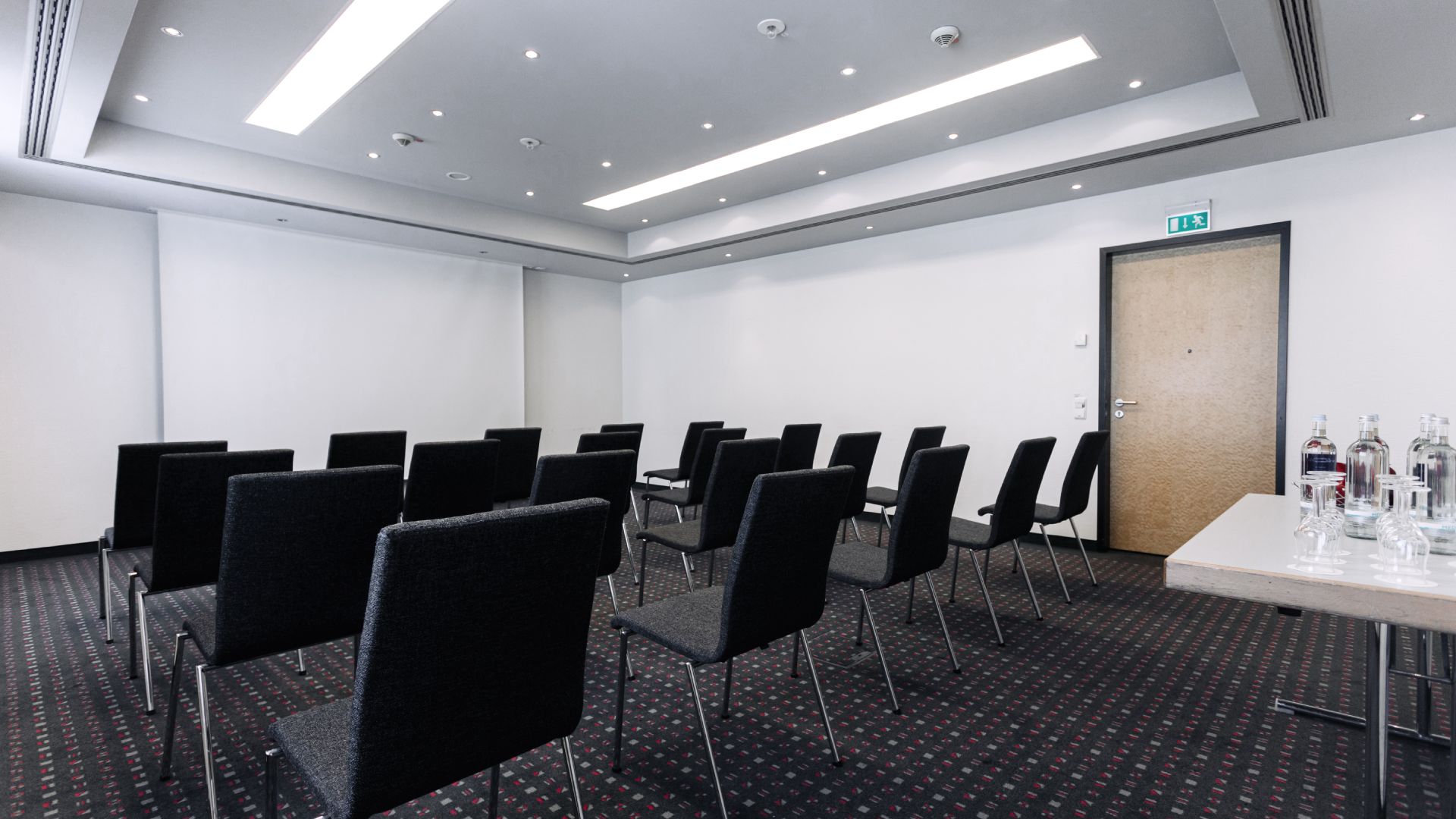 35m² meeting room, can accommodate up to 28 people in theatre style. Suitable for small meetings, consultations, and business.